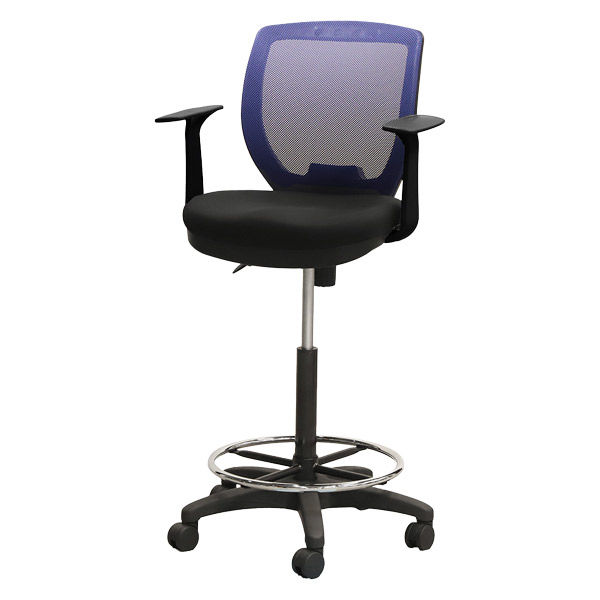 Netforce ハイチェア コア T字肘 キャスター脚 メッシュ カウンターチェア ネイビー 1脚(直送品)