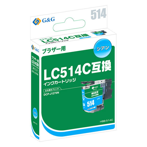 G&G ブラザー(brother)用 互換インクカートリッジ HBB-514C シアン LC514C互換 1個(直送品)
