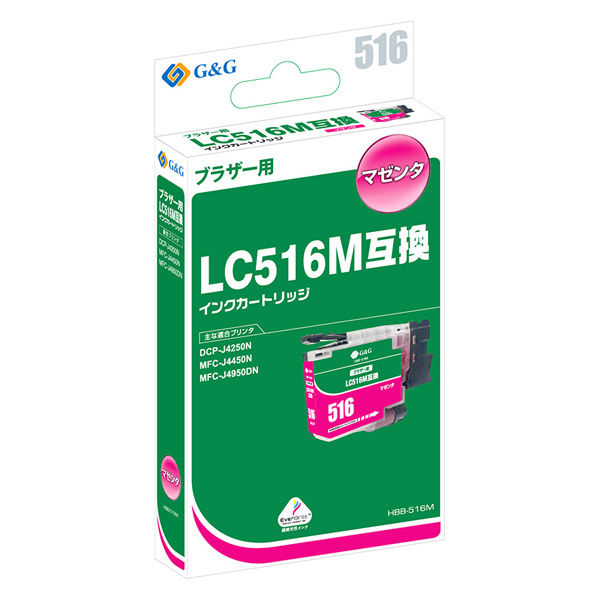 G&G ブラザー(brother)用 互換インクカートリッジ HBB-516M マゼンタ LC516M互換 1個(直送品)