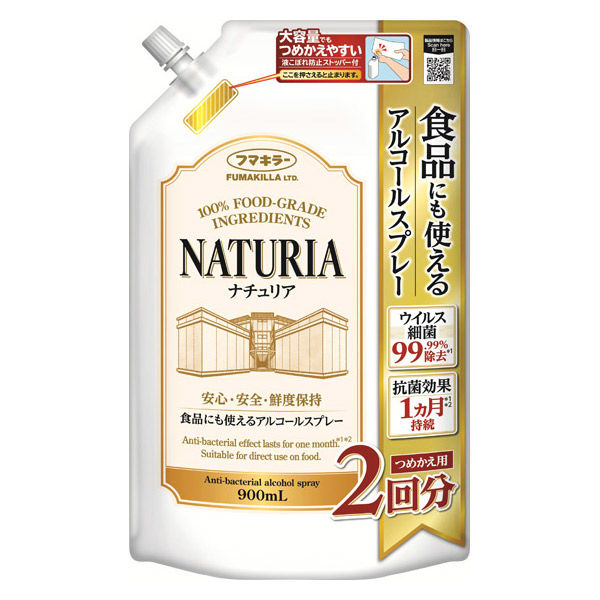 食品にも使えるアルコールスプレー ナチュリア 詰め替え 900mL 1個 フマキラー