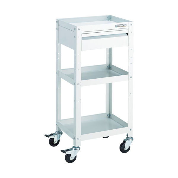 | 商品の特徴 | ●車輪と共に車軸もロックするダブルロック仕様のキャスターです。●棚板の組付けは、内側にフランジ付ナットを使用しているため、外側から六角レンチで締め付けることで組み立てが可能です。●引出し内寸(mm)間口×奥行×深さ:322×317×94 | ||