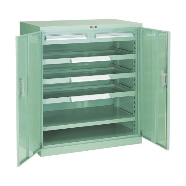 | 商品の特徴 | ●上部の天板で作業ができます。●耐震ラッチ機構付で地震などで収納物が飛び出すのを防止します。●スチール天板●シリンダ錠(鍵2枚付)●両開きタイプ●シリンダ錠●セット内容:●見出しカード:引き出し、スライド棚1段につき1枚●仕切板:深型引き出し1段につきパーテーション2枚、デバイダー6枚 | ||