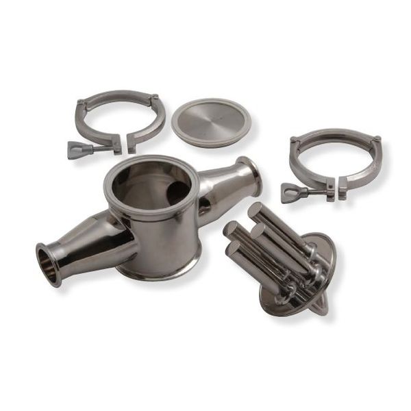 - ●ジュース、ハム、ソーセージ、ジャム、ミンチ肉、調味料、乳製品、味噌等の高粘性食品の工程間パイプ送路に設置し、磁性微粒粉を強力マグネットに吸着させ捕捉させます。●食品、医薬品に適したサニタリー仕様です。