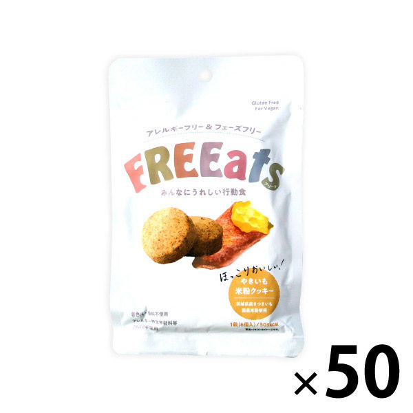米粉クッキー 6年保存 やきいも 50袋/ケース 防災グッズ 非常食 FREEats アレルギー対応 小麦粉不使用 グルテンフリー(直送品)