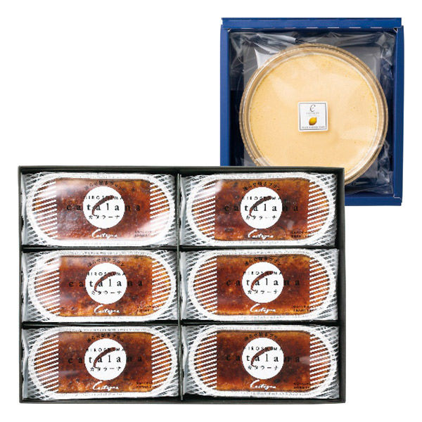 | 商品の特徴 | 【カタラーナ6個セット】アイス感覚でお楽しみいただける新食感の焼きプリン・フローズンデザートです。濃厚でなめらかな甘味とカソナードの絶妙の苦みが香ばしい絶品です。【レモンチーズケーキ】瀬戸内海の陽光とミネラルいっぱいの潮風に育まれた広島産のレモンを使用しました。果皮まですり込んで焼き上げましたので香りがよく、際立った甘酸っぱさが特長のチーズケーキです。 | ||