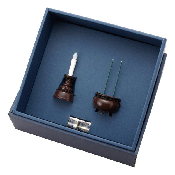 - 直径4.3cm高さ10cmろうそく1個・ポリプロピレン、ABS樹脂・直径5.5cm高さ11cm線香1個・ABS樹脂・単5電池4本付