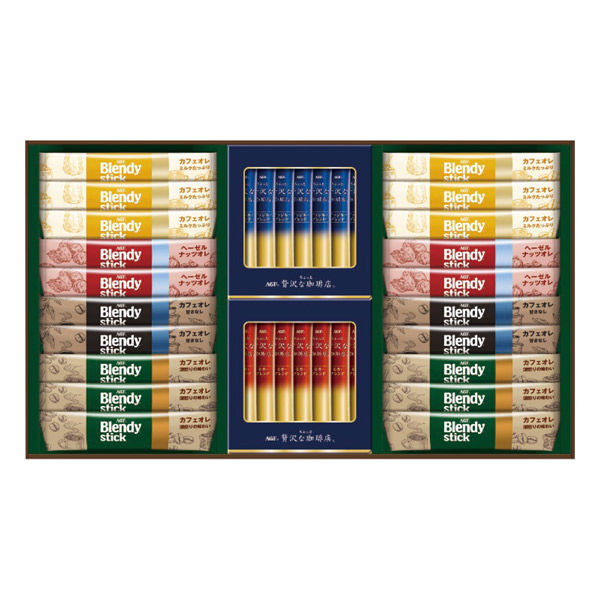 - ブレンディスティック(カフェオレ14g×6本・カフェオレ(ミルクたっぷり14g×6本・甘さなし11.4g×4本)・ヘーゼルナッツオレ11g×4本)・ちょっと贅沢な珈琲店スティックブラック(ブラジルブレンド2g・モカブレンド2g各7本)