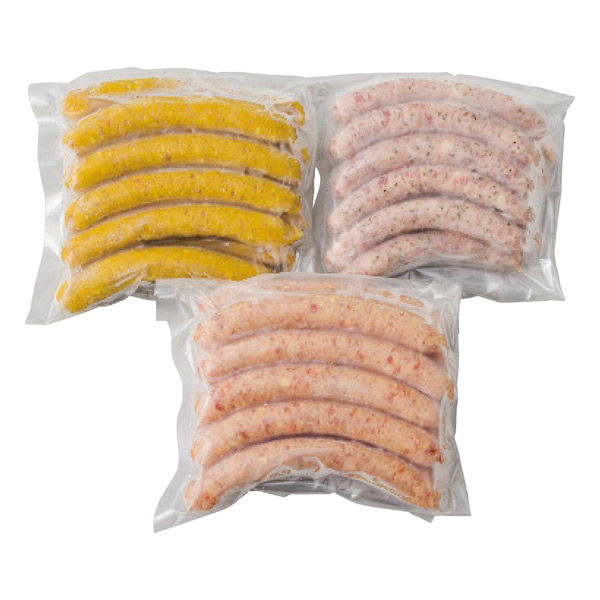 | 商品仕様 | レモン&バジルウインナー(10本入)270g・カレーウインナー(10本入)400g・チーズウインナー(10本入)400g各1個 | 包装 | 簡易包装 |