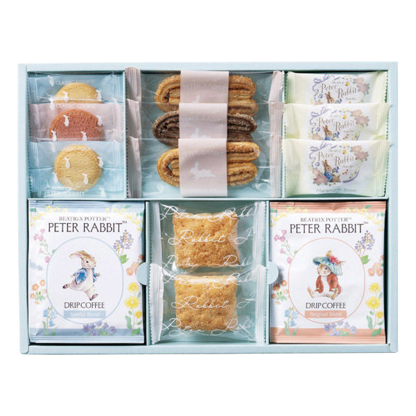 | 商品の特徴 | コーヒーとクッキーの詰合せ商品です。ピーターラビットといっしょに素敵なカフェタイムを。 | ||