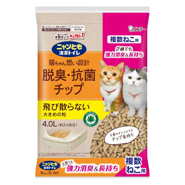 ニャンとも清潔トイレ チップ 猫砂 脱臭・抗菌チップ 複数ねこ用 大きめの粒 4L 1袋 エステー
