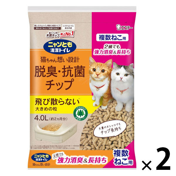 ニャンとも清潔トイレ チップ 猫砂 脱臭・抗菌チップ 複数ねこ用 大きめの粒 4L 2袋 エステー