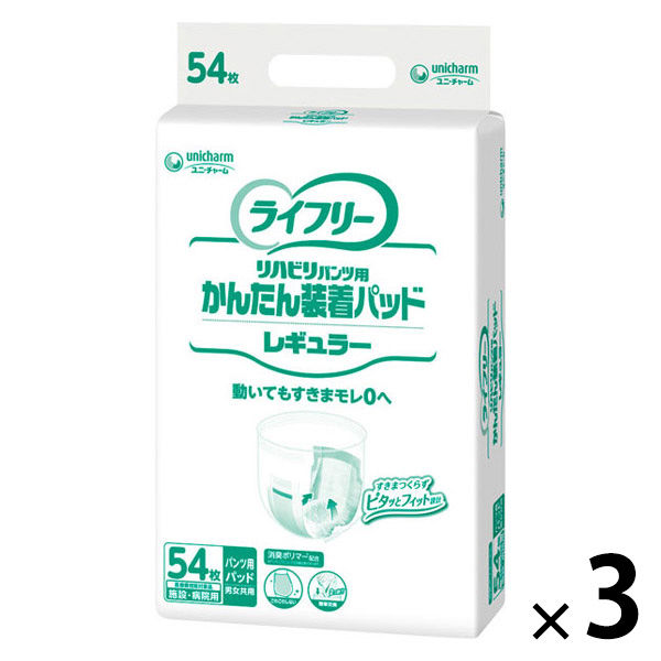 ユニ・チャーム ライフリーかんたん装着パッド レギュラー 54枚 50316 1セット(162枚入:54枚入×3)