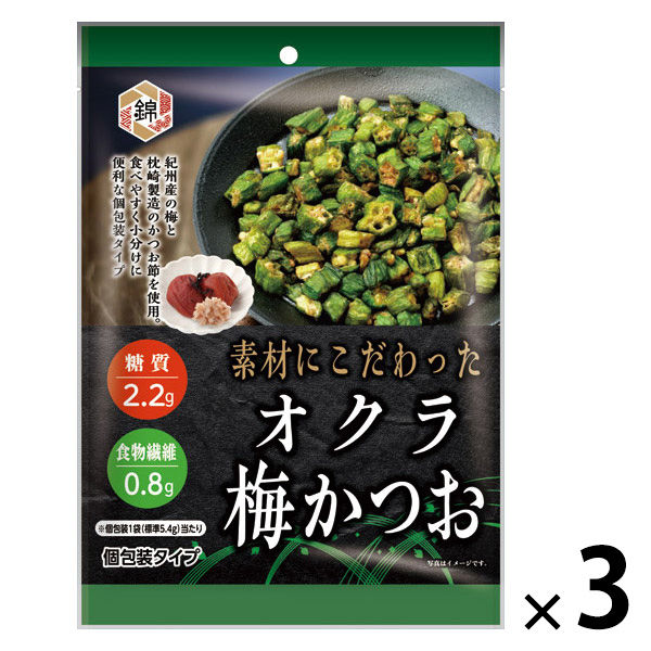 | シリーズ名 | 錦糸堂 | 原材料 ※お手元に届いた商品を必ずご確認ください | オクラ加工品(オクラ、植物油脂、麦芽糖、食塩)(ベトナム製造)、梅シーズニング[砂糖、デキストリン、食塩、梅酢エキスパウダー(紀州産梅使用)、でん粉、たんぱく加水分解物、粉末しょうゆ、酵母エキスパウダー]、かつお節パウダー(枕崎製造かつお節使用)、梅肉パウダー(紀州産梅使用)/調味料(アミノ酸等)、酸味料、香料、(一部に小麦・大豆を含む) |