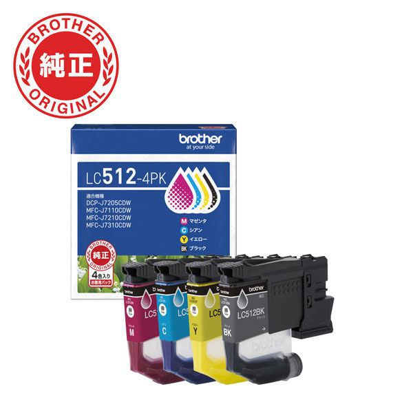 ブラザーMFCーJ7110CDW、MFCーJ7310CDW、DCPーJ7205CDW…に対応した純正インクカートリッジLC512ー4PK(4色パック)
