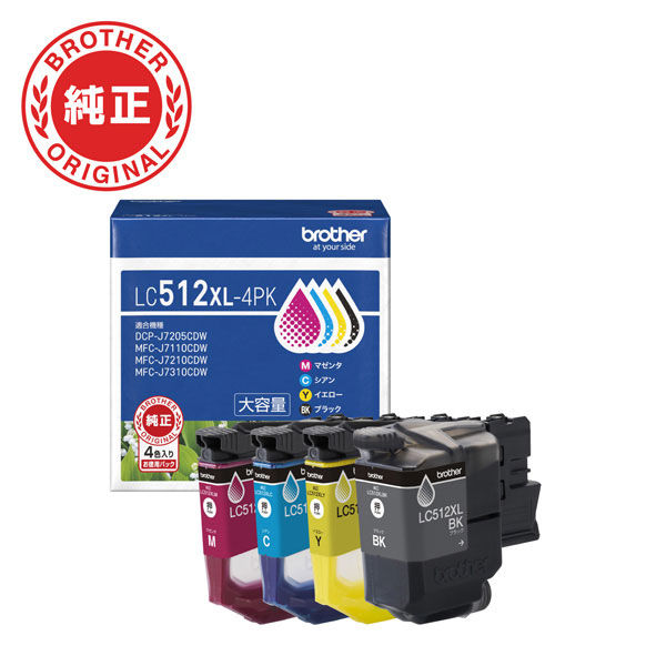 ブラザーMFCーJ7110CDW、MFCーJ7310CDW、DCPーJ7205CDW…に対応した純正インクカートリッジLC512XLー4PK(4色パック)