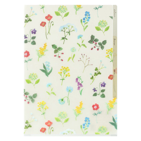 | 商品の特徴 | 右端が大きく開き、書類の出し入れがスムーズな3ポケット仕様のクリアホルダー。用途に合わせ書類をざっくり仕分け。ポケットごとに絵柄が異なり、書類をいれる位置によってデザインの変化が楽しめます。各ポケットにインデックスがついて、用途ごとに分類したり、書類を探したりする際にも目印に。誰でも楽しく分類上手に。書類の分類に最適なA4サイズは、仕事、家庭、勉強・学習と、さまざまなシーンで活躍します。色とりどりの花を、水彩タッチのナチュラルな雰囲気で仕上げたデザインです。 | ||