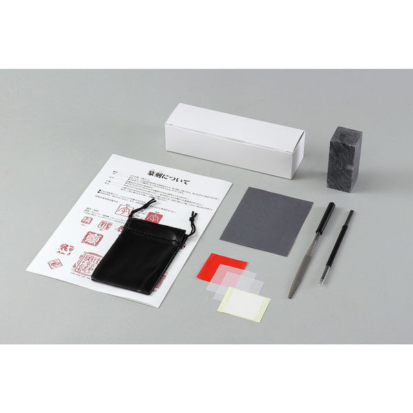 | 商品の特徴 | やわらかく彫りやすい黒蝋石のてん刻セットです。収納用のレザー調小袋、印刀と金属やすりも付属しています。 | ||