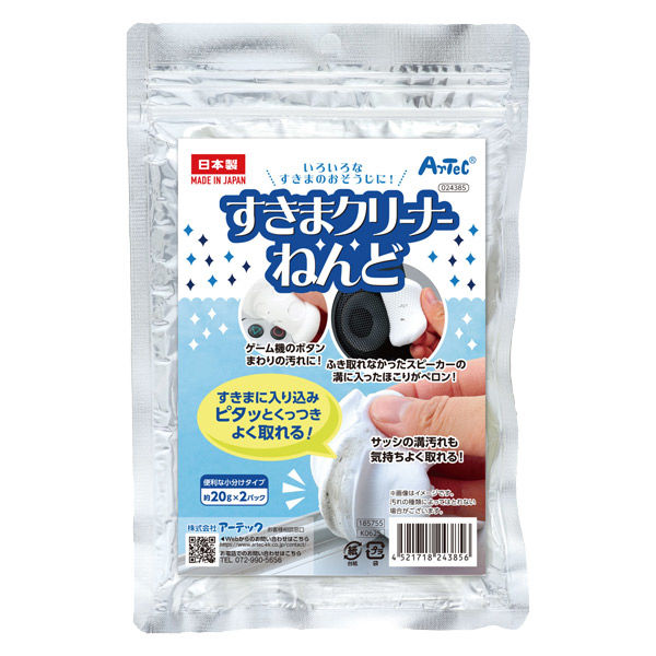 | 商品の特徴 | 手が届かないスキマの汚れをピタッとくっつけて取れる便利なお掃除ねんどです。スピーカーやゲーム機、サッシなどのホコリやゴミを吸着してキレイにします。形を自由に変えられるので、ボタンまわりやサッシの溝などにもフィットします。使いたい分だけちぎって使える経済的なクリーナーです。繰り返し使えるタイプで、水を使えない場所のお掃除にもおすすめです。綿棒につければ届きにくい場所もピカピカに。日本製で安心してお使いいただけます。 | ||
