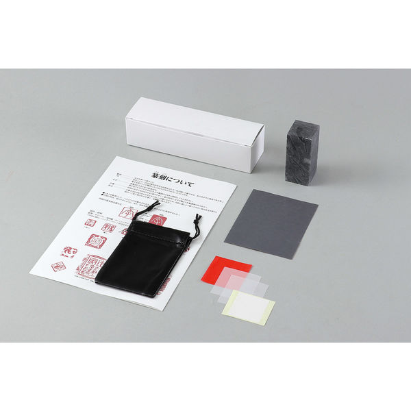 | 商品の特徴 | やわらかく彫りやすい黒蝋石のてん刻セットです。収納用のレザー調小袋も付属しています。 | ||