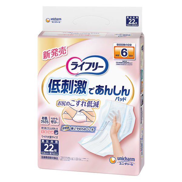 ユニ・チャーム ライフリー お肌に低刺激であんしん 尿取りパッド6回22枚 1セット(88枚入:22枚入り×4パック)