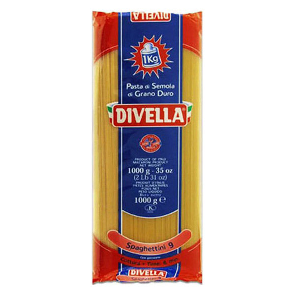 ディヴェッラは南イタリアでシェアNo.1ブランド。スパゲッティより少し細めで、スパゲッティーニと呼ばれます。トマトソースや和風の味付けにピッタリです。