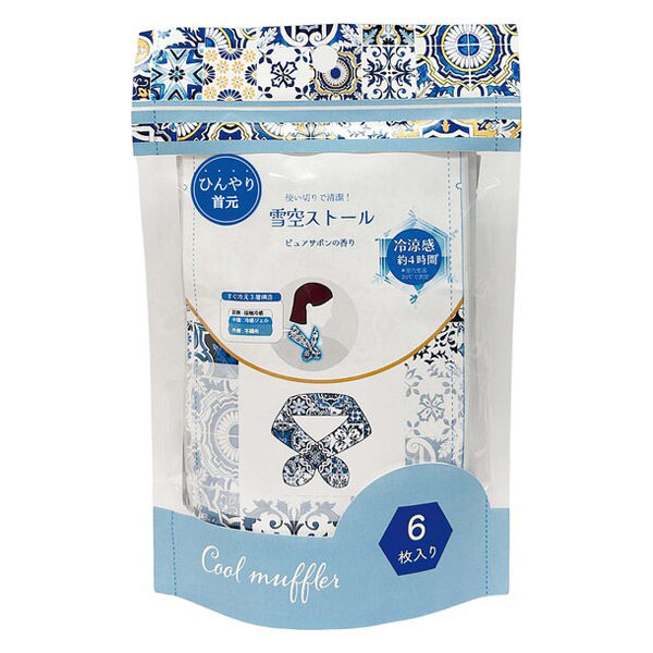 雪空ストール ピュアサボンの香り ほんやら堂 首 ネッククーラー 冷却用品 使い捨て ひんやりグッズ 1袋(6枚入)
