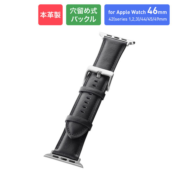 Apple Watch 42(Series 1/2/3)/44/45/46/49mm バンド 「CORVIN」プランプレザーバンド ブラック(直送品)