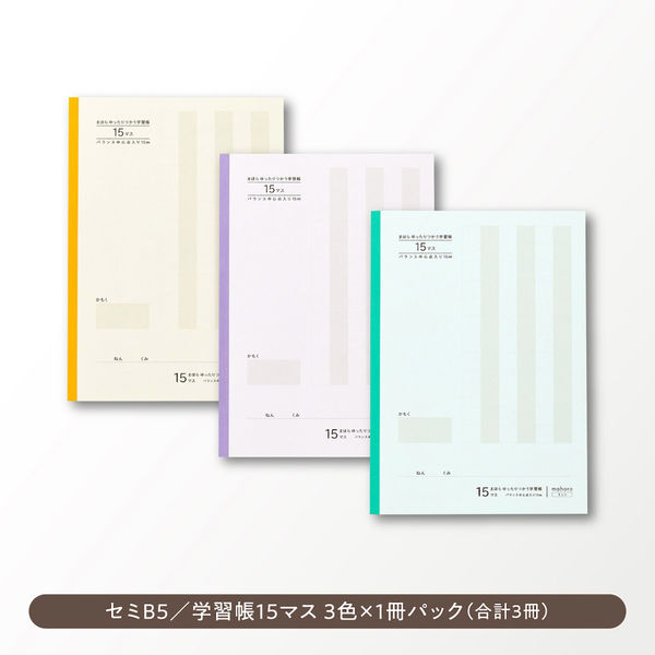| 商品の特徴 | 生産:日本製、サイズ:セミB5、枚数:30枚(60ページ)×各1冊の3色セット 罫線サイズ:15マス(バランス中心点入り15mm)、標準対象学年:小学生2・3・4年、こくご15マス・さんすう14マスで使用できます中紙には光の反射を抑えられる、色付きの国産色上質紙を使用しています。 マスの中心を示すバランス中心点を基準にして、左右上下の余白を意識して書くことで、罫線に意識を取られることなく、文字を書くことができます。 あみかけの行が1行おきにあるので、書いているところを見失わずまっすぐ書くことができます。 | ||