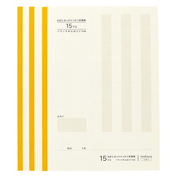 | 商品の特徴 | 生産:日本製、サイズ:セミB5、枚数:30枚(60ページ)×3冊セット 罫線サイズ:15マス(バランス中心点入り15mm)、標準対象学年:小学生2・3・4年、こくご15マス・さんすう14マスで使用できます、カラー:レモン 中紙には光の反射を抑えられる、色付きの国産色上質紙を使用。 マスの中心を示すバランス中心点を基準にして、左右上下の余白を意識して書くことで、罫線に意識を取られることなく、文字を書くことができます。 あみかけの行が1行おきにあるので、書いているところを見失わずまっすぐ書くことができます。 | ||