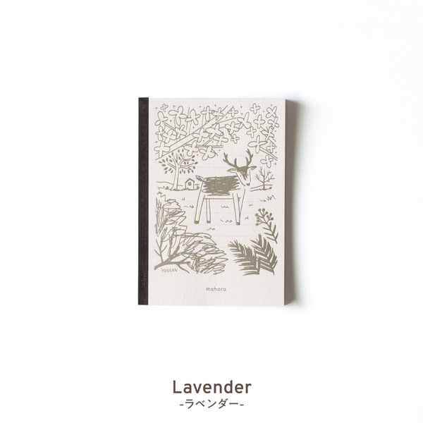 | 商品の特徴 | 森の奥でたたずむ鹿をイメージしたデザインを表紙に銀色箔で加工を施したノート。 エンボスになったキラキラの箔デザインは、目にする度にワクワクします。 お気に入りのデザインで、高級感のある大人のデザインノートです。 使い終わった後もいつまでも大切に保管しておきたい、そんなノートにして欲しいと願っています。 ギフトやプレゼントにも素敵です。 中紙には色付きの国産上質紙を使用しています。 生産:日本製、サイズ:B6(W128×H182mm)、罫線:太細交互罫線、枚数:50枚(100ページ)、カラー:ラベンダー | ||