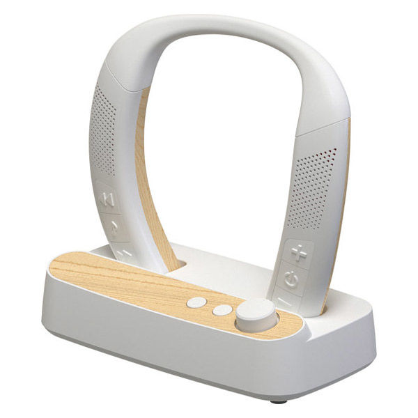 - 首掛けとスタンドの2WAYで使用できる。はっきり音モード/音楽モードを搭載した首掛けワイヤレススピーカーです。テレビの音声も簡単設定で聴けます。首に掛けて自分にちょうどいい音量で聴くことができます。手元に置いてみんなで同じ音を楽しむ使い方も。Bluetooth搭載のため、スマートフォンやタブレットなどの機器も接続できます。はっきり音モードは中音域を強調し、声を聞き取りやすくします。鑑賞モードは低音域を強調しソフトな音質です。生活防水IPX4相当のため、キッチン周りや水周りの様々なシーンで使用可能です。低遅延モードは音ズレが抑えられて臨場感満載!ゲーム・スポーツ観戦にピッタリです。マイク内蔵のため、リモートワークでのオンライン会議にも使えます。ヘッドホン・イヤホン接続をすれば、掃除や洗い物の最中もテレビの音声をよりクリアに楽しめます。