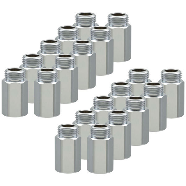 | 商品の特徴 | ●工事業者様(法人)向けの複数売り商品です。●ワンホール混合栓などを取付ける際、給水・給湯ホースが届かないときに止水栓との間に使用します。●長さを25ミリ延長できます。●呼13の止水栓と混合栓の給水・給湯ホース接続用です。●パッキン付き。 | ||
