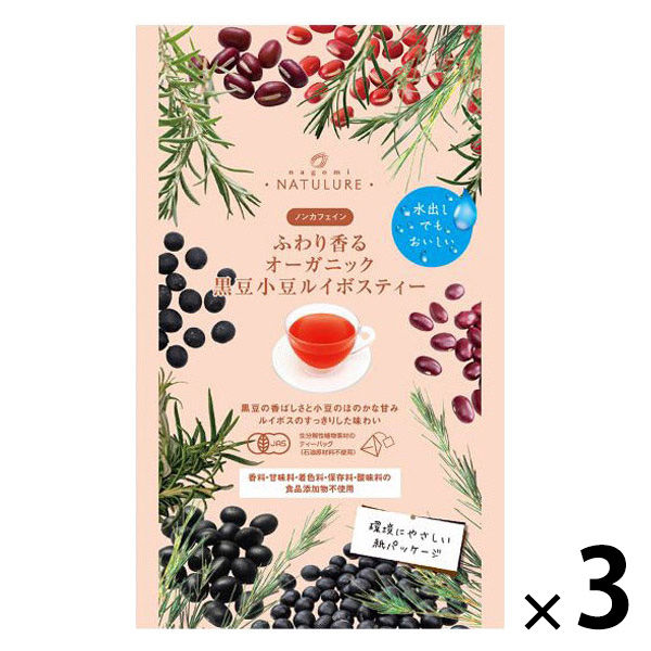 - 有機黒豆(北海道)、有機ルイボス(南アフリカ)、有機小豆(北海道)