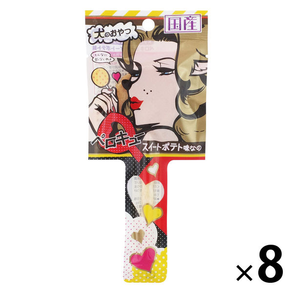 | 商品の特徴 | ペロペロキャンディ型の犬のおやつ。棒の部分は牛皮ガムでできているので、全部食べられます。#ペロキュー ぺろきゅー かわいい ドッグフード ペットフード いぬ用 イヌ用 オヤツ サツマイモ さつまいも さつま芋 すいーとぽてと 日本産 | ||