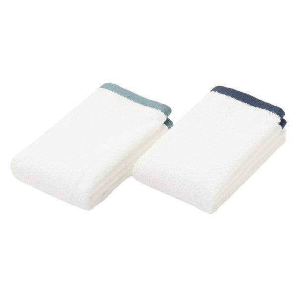 無印良品 縁カラー付 コンパクトフェイスタオル2枚組 25×70cm ブルー×ネイビー 良品計画