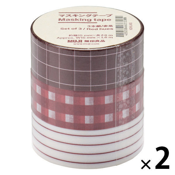 無印良品 マスキングテープ 3本組 赤系 約幅15mm×長さ6m 1セット(1個(3本組)×2) 良品計画