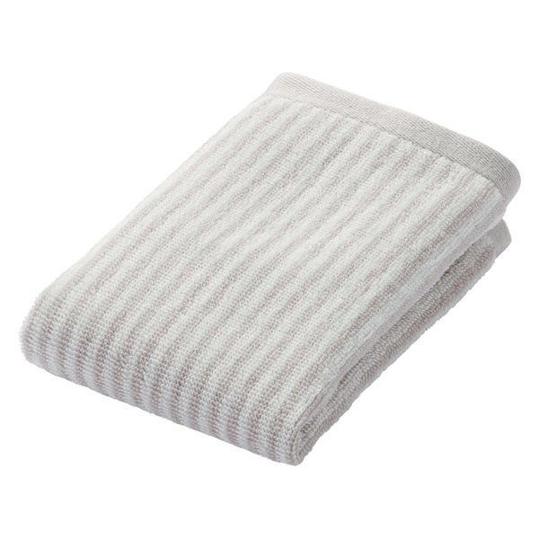 無印良品 ふっくらパイルハンドタオルループ付き(柄) 34×35cm ライトグレーストライプ 良品計画
