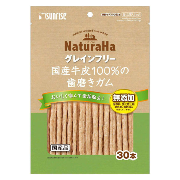 ナチュラハ グレインフリー 国産牛皮100%の歯磨きガム 無添加 国産 30本 1袋 サンライズ ドッグフード 犬 おやつ 歯磨き
