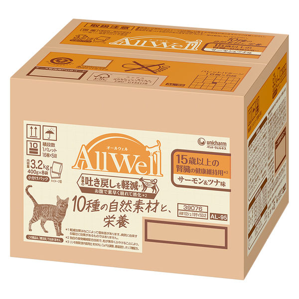 オールウェル 10種の自然素材 15歳以上の腎臓健康維持用 サーモン&ツナ味 国産 3.2kg(小分け400g×8袋)1箱 ユニ・チャーム