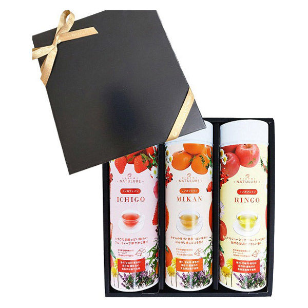 | 適した湯温 | 100℃ | 特徴 | nagomi-NATULUREの人気のフルーツハーブティー3種のロング缶ギフトです。おしゃれで高級感のあるロング缶、大切な方へのプレゼントやお歳暮ギフト、クリスマスギフトや法人のご進物に最適です。香料や甘味料、保存料を一切使わず、フルーツをふんだんに使用した、フルーツの純粋な香りと味わいをお愉しみいただけるノンカフェインのフルーツハーブティー3種のロング缶セットです。 |