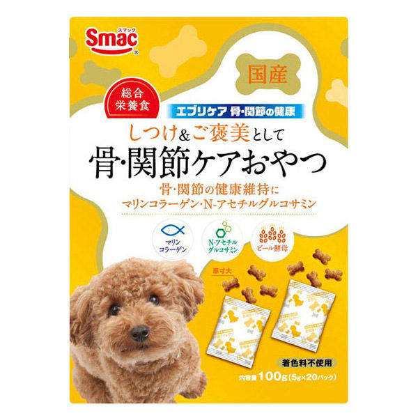 | 商品の特徴 | しつけ&ご褒美として、総合栄養食おやつ。骨・関節の健康にマリンコラーゲン、N‐アセチルグルコサミン配合#犬用スナック#いぬ用お菓子#わんちゃん用おやつ#国産#ご褒美#ワンちゃんプレゼント#無添加#骨#関節#しつけ#総合栄養食#マリンコラーゲン#グルコサミン | ||