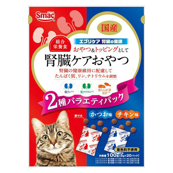 (バラエティパック)エブリケア 腎臓の健康 かつお味 チキン味 2種 国産 100g(5g×20パック)1袋 スマック 猫用 おやつ