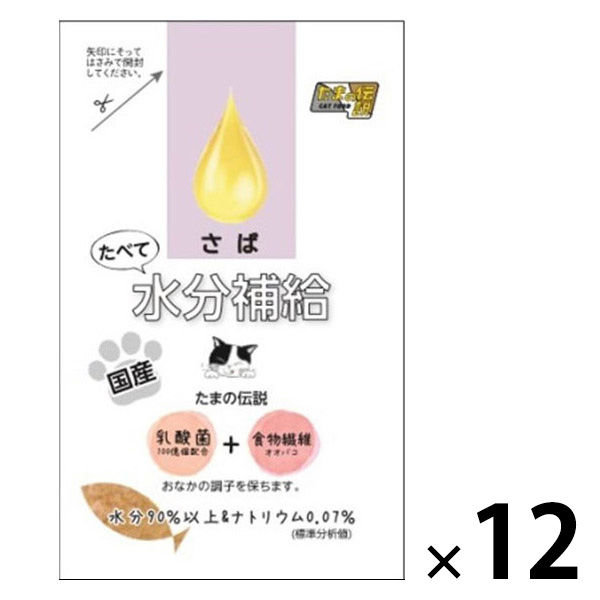 | 商品の特徴 | たまの伝説 水分補給シリーズ。猫ちゃん水分補給に。乳酸菌100億個と食物繊維(オオバコ)を配合し、お腹の健康を保ちます。人気のさば味。#ペット 猫 ネコ 猫ウェット ウェットフード 鯖 サバ さば パウチ | ||