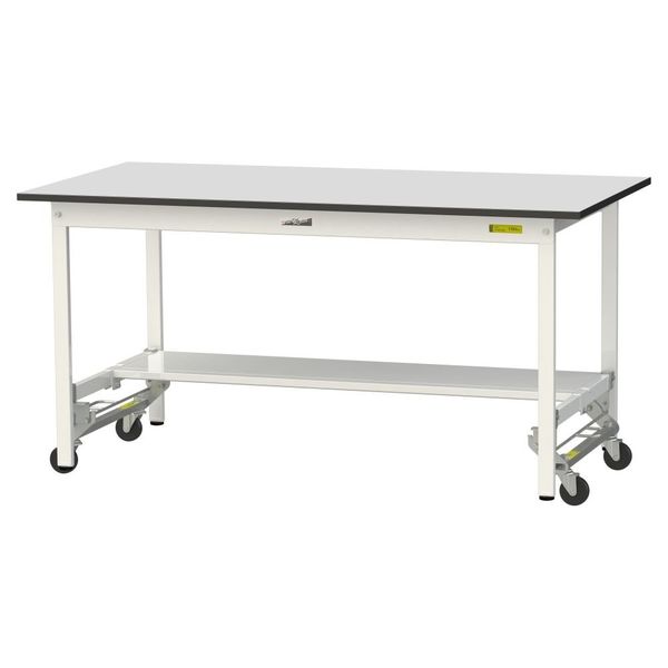 軽量作業台/耐荷重150kg ワンタッチキャスター付きH740mm 半面棚付き RoHS2指令対応塩ビシート天板 ワークテーブル150シリー(直送品)