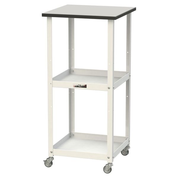 ●補助テーブル、移動用ワゴン、一人用軽作業台として一台三役の便利な天板付きワゴン!クッション性に優れ、走行跡もつきにくいエラストマー車輪を採用!棚板2枚付き。
