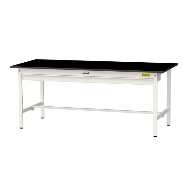 - ●実験台に最適な耐薬品天板仕様の固定式作業台。長尺物の収納に便利な引き出し付き。●軽作業に最適な均等耐荷重150kg。高さ740mmで座り作業台におすすめです。●天板表面材のケミテクト(特殊アクリル系樹脂化粧板)は、強酸・強アルカリなどの耐薬品性に優れています。さらに改正RoHS指令(RoHS2)10物質規制に対応天板です。●研究室・実験室で使用する実験台、検査用台に最適です。●天板芯材はパーチクルボードでたわみにくく、脚部はスチール製の角パイプ構造で丈夫な作業台です。●ワイド引出しはワークテーブルの間口方向全面の引き出しで、事務用品や工具の収納、長尺物の収納にも使用でき便利です。●フルオープン引き出しで収納物が見やすく出し入れがしやすい。スライドレール付きのため開閉もスムーズです。●足元のツナギ(カンヌキ)は、前後方向の自由な位置にセット可能です。●ツナギを後ろにセットすれば、作業台の下に備品を収納したり、足元を広々使用できて便利。●脚先には樹脂製アジャスターを標準装備!手回しで簡単に床レベルが調整でき、作業台を水平に保ちます。●独自構造で簡単組み立て、しっかり安定!少ないボルトで組立がしやすく、かつ横揺れを防止します。●(注意)天板以外の脚部はスチール製(粉体塗装)で、天板同等の耐薬品仕様ではございませんので予めご了承ください。●(注意)この商品には脚部にスリット穴が無いため、オプションの「中間棚板」は後付けできません。●(注意)ワイド引き出しに鍵・仕切り板は付属しておりません。●ワイド引出し1個付●お客様組立品