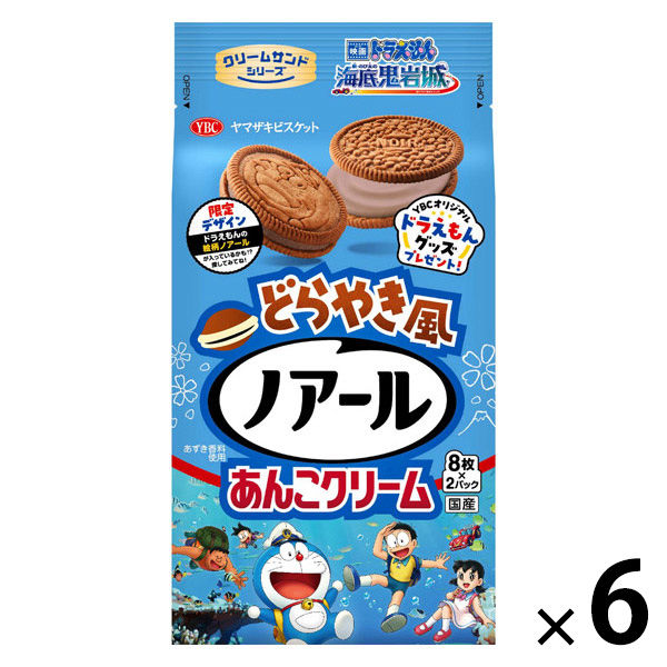 | 商品の特徴 | ドラえもんの大好物どらやきをイメージしたノアールです。どらやきの皮をイメージした茶色いビスケットはほんのりバターのコクを利かせてビスケットならではのおいしさを加えました。クリームは黒糖や焼き塩のアクセントをプラスしたほど良い甘さのあんこクリームです。パッケージは2026年公開「映画ドラえもん 新・のび太の海底鬼岩城」とコラボしたオリジナルデザイン。 | ||
