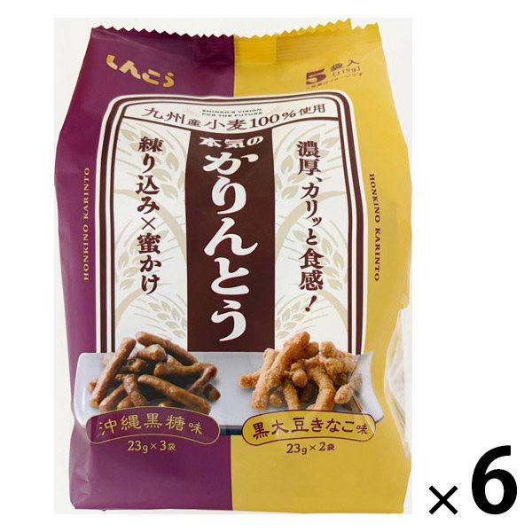 | 商品の特徴 | 九州産小麦100%使用した2種アソートかりんとうです。黒糖味3袋・きなこ味2袋 | ||