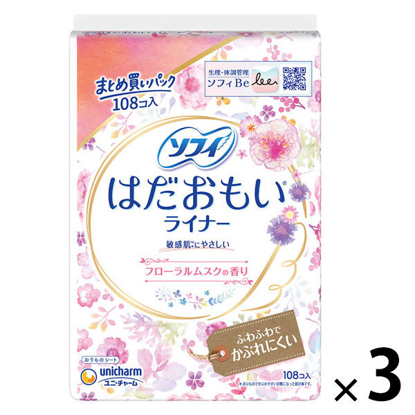 生理用品 おりものシート ライナー ソフィ はだおもいライナー フローラルムスク 108枚 1セット(1個×3)