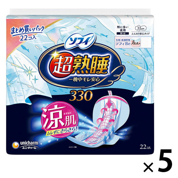 生理用品 ナプキン ソフィ 超熟睡ガード涼肌330 22枚 1セット(1個×5)
